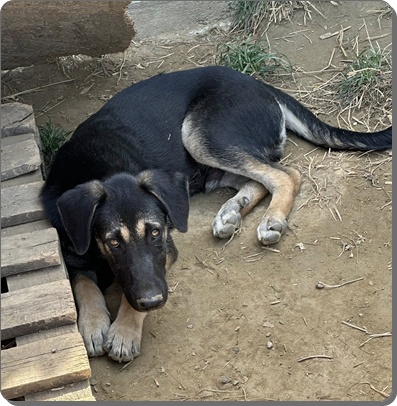 Er ist hier verträglich mit den anderen Hunden, spielt gerne.